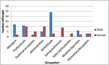 According to the 2011 census report, there is a more evenly spread set of occupations between males and females. Only 110 people in Winwick have jobs. For men, the main job type is skilled trade, which can include builders, plumbers and electricians. For women though, the occupation type has changed drastically since 1881. In 2011, there were 10 women in administration and 10 women professionals, both these jobs are more skilled than the domestic services that was dominant in 1881.[24]