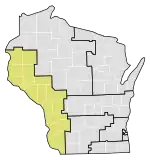 Wisconsin's 3rd congressional district covers most of the Driftless Area in southwestern and western Wisconsin. The district includes the cities of La Crosse, Eau Claire and Stevens Point, as well as most of the Wisconsin side of the Minneapolis-St. Paul metropolitan area. It borders the states of Minnesota, Iowa, and Illinois. Democrat Ron Kind has represented the district since 1997.