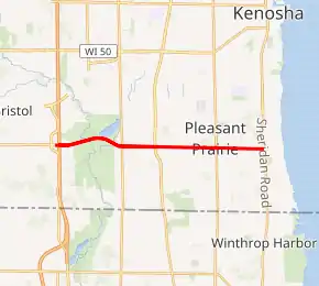 State Trunk Highway 165 (STH-165, commonly known as Highway 165 or WIS 65) is a highway in far southeastern Wisconsin connecting Pleasant Prairie, south of Kenosha, with Interstate 94/Interstate 41/US Highway 41 (I-94/I-41/US 41); the roadway continues westward as County Trunk Highway q (CTH-Q) until it ends at US 45 near Pikeville. The areas served by this connecting route are a commercial area near the Interstate which is adjacent to a growing industrial park between the Interstate and WIS 31 (Green Bay Road) to the east; and a predominantly residential area between WIS 31 and WIS 32 (Sheridan Road) near the shore of Lake Michigan.