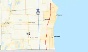 State Trunk Highway 31 (often called Highway 31, STH-31 or WIS 31) is a 22.86-mile (36.79 km) state highway in Kenosha and Racine counties in the US state of Wisconsin that runs north–south as a suburban route passing Racine and Kenosha. With the exception of a two-mile (3.2 km) stretch between Four Mile Road and WIS 32 at the north end, WIS 31 is a multi-lane urban highway. An expansion of the remaining two miles (3.2 km) was proposed by the Wisconsin Department of Transportation (WisDOT).