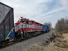![]() A Wisconsin and Southern train pulling cars in Milwaukee | |