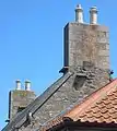 Traditional vernacular architecture in Jersey is in granite and such witches' stones can be seen protruding from many older houses. The real origin of this architectural feature is to protect thatched roofs from seeping water running down the sides of the chimney stack. Thatched roofs being thicker than tiled roofs, the jutting stones would sit snugly on the thatch – as can be seen on the few remaining thatched roofs in Jersey. When thatch began to be generally replaced by pantiles in the 18th century, and later by slates, the witches' stones were left protruding prominently from the chimney stack. This either gave rise to the belief in witches' resting places, or reinforced an existing belief. Fear of witches was widespread in country areas well into the 20th century in Jersey.
