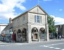 The town hall became the main meeting place for vestry meetings in the late 18th century.[2] However, after the area was advanced to the status of urban district in 1895,[5] the new civic leaders decided to hold their meetings in the Corn Exchange, rather than the town hall.[2][lower-alpha 1] Once the local borough courts ceased operating in 1925, the town hall fell vacant.[2] Ownership of the building passed to a body known as the Town Hall Charity in 1929,[4][8] and, following the change of ownership, alterations, which involved filling in the left hand arcade, were carried out to a design by Thomas Rayson in 1930.[2] The work also included installation of public toilets on the ground floor, the fitting of a new staircase and the removal of the bay window on the first floor.[2]