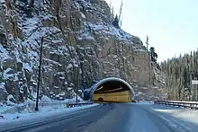 Wolf Creek Pass is a high mountain pass on the Continental Divide, in the San Juan Mountains of Colorado. It is the route through which U.S. Highway 160 passes from the San Luis Valley into southwest Colorado on its way to New Mexico and Arizona. The pass is notable as inspiration of a C. W. McCall song. The pass is significantly steep on either side (6.8% maximum grade) and can be dangerous in winter. There are two runaway truck ramps on the westbound side for truckers that lose control of their brakes.[2][3]