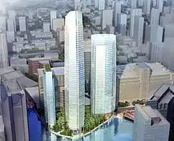 ![]() Rendering of the Wolf Point Towers plan with Wolf Point South Tower in the center |