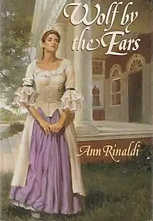 Wolf by the Ears is a young adult novel by Ann Rinaldi, first published in 1991. It is about a young girl, Harriet Hemings, who is a slave belonging to Thomas Jefferson. She tries to decide if she will stay and be a slave or leave and take her freedom; the other issue for her to decide on is whether "passing" is an option (passing would mean that her skin is white enough that she could pretend to be white in society). Meanwhile, there are constant rumors about Thomas Jefferson being her father.