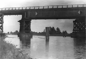 Joachim Müller had undertaken an unsuccessful arson attack against a temporary wooden Autobahn bridge at Finowfurt,[5][6] he had successfully employed a stink-capsule to make a polling station unusable. he had scattered "tyre destroyers" on the road, and he was intending to blow up the old lock along the recently opened Havel Canal at Paretz. His wife, Ursula, had been a "courier", providing a link to the KgU. Under interrogation the Müllers confessed to a lengthy list of planned and/or enacted sabotage schemes, of which hardly any had been crowned with success. Ursula Müller stated that a KgU member, "most likely" Ernst Tillich, at that time the campaigning group's leader,[1] would have wished to drive a car to Finowfurt with a petrol/gasoline canister, incendiary equipment and "tyre destroyers" in support of a plan to burn down the nearby "Kaiser Bridge".[2] Sabotage tools, including incendiary devices, for Müller and other unknown saboteurs had, on his own admission, been produced by Kaiser.