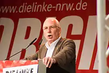 In the 2010 state election, Wolfgang Zimmermann won a seat in the Landtag of North Rhine-Westphalia as the second person on the state party lists. In the inaugural meeting of the parliamentary group, he was elected (together with Bärbel Beuermann) to be the group's spokesperson.[1] In the 2012 state election, the party again selected him to be listed second on the party lists. During a medical examination in the course of his campaign, he was discovered to have lung cancer, but despite this, he did not end his bid for election. When the Left failed to garner enough votes to surpass the 5% threshold required to remain in parliament, Zimmerman lost his seat.