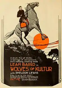 Wolves of Kultur is a 1918 adventure film serial directed by Joseph A. Golden. It was Charles Hutchison's first serial and though he was the second lead, the film made him a star. Originally 15 chapters, it survives today only in an edited 7 chapter version, cut to showcase Hutchison's stunt work.[1] The story has a war preparedness theme as an unnamed foreign power threatens America's security.