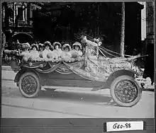 Suffragists hosted a large parade as part of the Harvest Festival Celebration in 1915.[37] The parade was led by Eleanor Raoul on horseback and following her, suffragists riding in Eastern Victory, a car once owned by Anna Howard Shaw.[37][51] The parade had a marching band and around two hundred marchers, all wearing yellow sashes.[52] After the marchers, came female college students wearing caps and gowns who were followed by two-hundred decorated cars.[52] Despite the size of the parade, the suffragists had almost no help controlling traffic from the Atlanta Police Department.[53] The police did help significantly with the harvest parade which was taking place at the same time.[53]