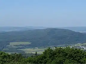![]() View over the Lützelsoon from the Alteburg Tower. The Womrather Höhe is the high point of the ridge in the middle distance. | |