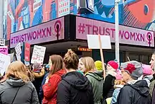 In 2017, the Womxn's March on Seattle chose to use the term "womxn" to promote the march. Elizabeth Hunter-Keller, the event's communications chair, told The New York Times that they chose it based upon the recommendation of a core organizer, who was a nonbinary person, and to reflect the organizing group's diversity. Hunter-Keller reported that although there were some questions, most supporters encouraged the choice.[17] In January 2018, Portland held the Indigenous Womxn’s March, dedicated to missing and murdered indigenous girls, women, and transgender people.[21]