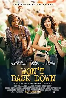 Won't Back Down is a 2012 American drama film directed by Daniel Barnz and starring Maggie Gyllenhaal, Viola Davis and Holly Hunter.