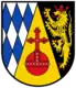 The municipality's arms might be described thus: Chapé, lozengy argent and azure, Or an orb banded and charged with a cross bottonnée gules both gemmed of the first and sable a lion rampant of the third armed, langued and crowned of the fourth.