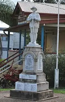 War Memorials are important in demonstrating the pattern of Queensland's history as they are representative of a recurrent theme that involved most communities throughout the state. They provide evidence of an era of widespread Australian patriotism and nationalism, particularly during and following the First World War.[1]