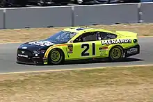 Ryan Blaney was announced as the No. 21 driver in 2015, with an alliance between the Woods and Team Penske.[7] The best result for the team was fourth at the Talladega spring race. The team's performance improved enough that, despite qualifying for just 16 races (in 19 attempts, an increase from their 12-race schedules in 2013 and 2014), they were able to finish 41st in owner points; this placed them ahead of the No. 32, No. 26 and No. 62, which all attempted the full schedule. Blaney returned to the team in 2016 for a full-time run, the team's first since 2008 and the first with one driver since 2006.[8] He scored nine top 10s and finished 20th in points.