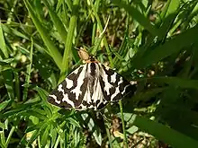 Birds and ants are the most common predators of P. plantaginis, to which the moth has both general and specialized defense mechanisms.[14] The blue tit (Cyanistes caeruleus) is a well known predator.