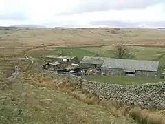 Woodend is situated between the Duddon Valley and the village of Ulpha and the valley of Eskdale, high up on Birker Fell, approximately 950 feet above sea level. It is claimed to have been an early Quaker settlement. With views towards Scafell Pike, England's highest mountain, it is very close to Devoke Water, one of the Lake District tarns.