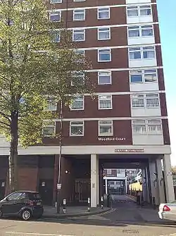 Woodford Court is a large public housing project completed in 1974 in Shepherd's Bush, London. It is located on the south side of Shepherd's Bush Green and falls just outside the Shepherd's Bush Conservation Area.
