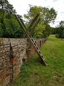 In the 19th century the Smith family diverted the route of the turnpike between Watton and Ware, moving it further from the house. The boundary of the park is marked by a brick wall along this road (now part of the A602) and also along the road between Watton and Hertford (now part of the A119).[8] There are gatekeepers' lodges controlling access from both roads. "Hertford Lodge East" is dated circa 1870; "Ware Lodge", dated circa 1840, is in Greek Revival style and Grade II listed.[8]