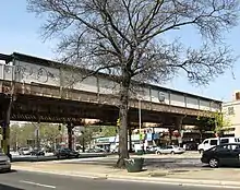 The Woodhaven Boulevard station is an elevated station on the BMT Jamaica Line of the New York City Subway, located in Woodhaven, Queens.[5] It is served by the J train at all times and the Z train during rush hours in the peak direction.[6]