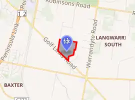 Woodleigh School is an independent, co-educational, K-12 day school located in the Melbourne suburb of Langwarrin South, Victoria, Australia. It has two junior campuses; "Minimbah" (38°10′25″S 145°06′49″E), located in Frankston South, and "Penbank" located in Moorooduc. Its senior campus, "Woodleigh" (38°11′31″S 145°10′30″E), is located in Langwarrin South.