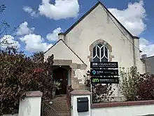 On 9 April 1938 the foundation stone of the Brisbane Spiritual Alliance Church was laid at 208 Logan Road (27.4948°S 153.0416°E). It was dedicated to the memory of George Coxon and his wife Mary who bequeathed two blocks of land and £2000 to the Church which they had established in 1924 following a split with another spiritualist church, after which they met in a building made of galvanised iron in Buranda. The architect was E. P. Trewern.[25][26][27] The church was opened on Sunday 10 July 1938. A window in the western wall memorialised George Coxon.[28] The church was still operating in 1990,[29] but, as at 2020, is used as commercial premises.[30]
