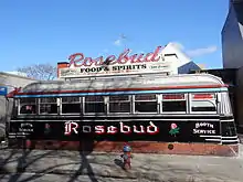 The Miss Worcester Diner (1948) still exists in its original location across the street from the former factory. The Rosebud (1941) is an example at 381 Summer Street in Somerville, Massachusetts near Davis Square.[1][2] The Elmwood Diner (originally known as Central Diner) is Worcester Lunch Car Company #806 built in 1947 and moved to its current location in 1953 where is still operates in the Elmwood section of Providence, Rhode Island. It was added to the National Register of Historic Places in 2010 [3] Worcester Lunch Car Company #821 is still in its original location at 53 Park Street in Adams, Massachusetts. The former "Miss Adams diner" was sold to a couple in 2013 who operate it as, Izzy's Diner and Pizza, a full service diner and pizza shop, and still contains many original items including the original Worcester Lunch Car Clock. The car is slowly being restored to look as it did originally. In August 2020, the diner was purchased by a local restaurateur. [4]