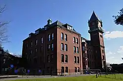 The four story Romanesque brick building was designed by church architects constructed William H. and John A. McGinty, and built in 1896. The building follows a rough H pattern, with a seven-story tower at the right front. The building's walls are red brick, with granite trim elements. The roof is slate, with copper flashing and two coppered cupolas. The building cost $300,000 to build, a large sum for the time, and very nearly bankrupted the organization, which provided housing for homeless boys in exchange for a share of their wages. The facility was managed by the Xaverian Brothers until the 1970s.[2]