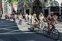 ![]() Participants in the 2021 World Naked Bike Ride in London. | |