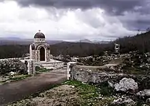 During the war, the Ustaše massacred more than 900 Serbs in Divoselo, more than 500 in Smiljan, as well as more than 400 in Široka Kula near Gospić.[137] On 2 August 1941, the Ustaše trapped about 120 children and women and 50 men who tried to escape from Divoselo. After a few days of imprisonment, where women were raped, they were stabbed in groups and thrown into the pits.[138]