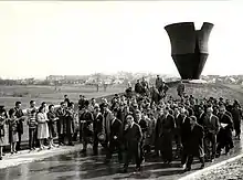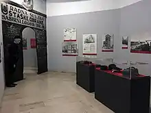 The Ustaše set up temporary concentration camps in the spring of 1941 and laid the groundwork for a network of permanent camps in autumn.[6] The creation of concentration camps and extermination campaign of Serbs had been planned by the Ustaše leadership long before 1941.[52] In Ustaše state exhibits in Zagreb, the camps were portrayed as productive and "peaceful work camps", with photographs of smiling inmates.[91]