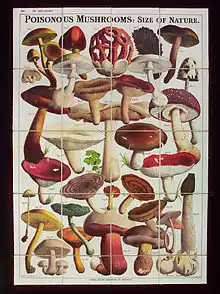 Worthington G. Smith's particular expertise was in fungi, which he collected, studied, and illustrated. He published extensively, writing over 200 articles and papers, as well as several books. His first major work in 1867 was to produce coloured illustrations of poisonous and edible fungi, printed in linen-backed poster format with an accompanying booklet.[5] He published Clavis Agaricinorum (a key to British agarics) in 1870, wrote a popular book on mushrooms and toadstools in 1879, illustrated Stevenson's Hymenomycetes Britannici in 1886, and produced a supplement to M.J. Berkeley's Outlines of British Fungology in 1891.[3][6]