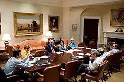 - Souza, Pete (2009-08-07), President Barack Obama attends a health care reform meeting in the Roosevelt Room of the White House, on Aug. 7, 2009. From left; Director of the Office of Management and Budget Peter Orszag, Counsel of Economic Advisors Chair Christy Romer, Assistant to the President for Legislative Affairs Phil Schiliro, Director of the Office of Health Reform Nancy-Ann Deparle, Health and Human Services Secretary Kathleen Sebelius, Chief of Staff Rahm Emanuel, President Obama, and Senior Advisor David Axelrod., retrieved 2020-12-03