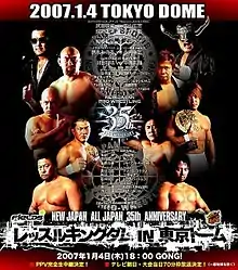 Wrestle Kingdom in Tokyo Dome (レッスルキングダム in 東京ドーム, Ressuru Kingudamu in Tōkyō Dōmu) (sequentially known as Wrestle Kingdom I) was a professional wrestling pay-per-view (PPV) event co-produced by the New Japan Pro-Wrestling (NJPW) and All Japan Pro Wrestling (AJPW) promotions,[4] which took place at the Tokyo Dome in Tokyo, Japan on January 4, 2007. It was the 16th January 4 Tokyo Dome Show and the first held under the new "Wrestle Kingdom" name.[5] Wrestle Kingdom is traditionally NJPW's biggest event of the year and has been described as their equivalent to WWE's WrestleMania.[6]