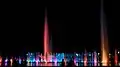 Wrocław Multimedia Fountain illuminated at night during a program