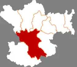 Wudu District (simplified Chinese: 武都区; traditional Chinese: 武都區; pinyin: Wǔdū Qū) is a district and the political and cultural centre of Longnan, Gansu province, China.[1] It borders the provinces of Shaanxi and Sichuan to the southeast. It has a population of 590,000, of which 110,000 live in the urban area.[2]