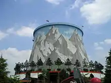 Many of the facilities constructed for the plant have been integrated into the park and its attractions, including the cooling tower, which features a swing ride and a climbing wall. The park also features four restaurants, eight bars, and six hotels.