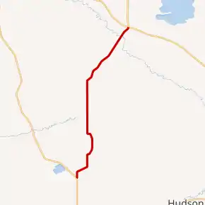 Wyoming Highway 132 begins its southern end north of Lander at US 287. Highway 132 proceeds northward toward Ethete. Before reaching Ethete, 17 Mile Road is intersected which turns into Wyoming Highway 137 east of here. Ethete is reached at approximately 7 miles into the route.[2] WYO 132 heads north finally reaching its northern terminus at U.S. Route 26 and the southern end of Wyoming Highway 133 at 17.43 miles.[3] Highway 132 lies entirely within the Wind River Indian Reservation.