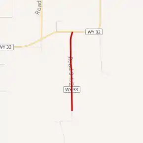 Wyoming Highway 33 is a spur route from Wyoming 32 southwest of Lovell south to Forester Gulch. WYO 33 is only 1.39 miles in length and becomes a Bureau of Land Management maintained route where the state highway designation ends.[1] Mileposts along WYO 33 increase from north to south.[1]