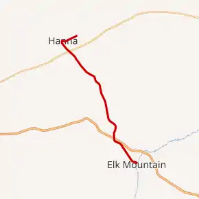 | Elk Mountain | 0.00 | 0.00 | Southern terminus; to I-80 | ||