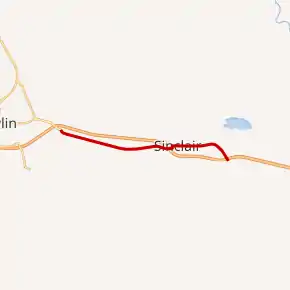 Highway 76 is the former routing of U.S. Routes 30 and 287 and still closely parallels their new route on Interstate 80. Highway 76 begins its west end at exit 215 of I-80 / US 30 / US 287 and the eastern terminus of I-80 Business / US 30 Business. Highway 76 heads east, running south of the interstate, but closely paralleling it until the town of Sinclair where I-80 / US 30 / US 287 pass over Highway 76 as it turns north and heads into town as S. 9th Street.[2] At just over 4 miles, WYO 76 turns east on Lincoln Avenue (Exit 219 can be reached by heading west on Lincoln Avenue). Highway 76 continues east through the town of Sinclair as Lincoln Avenue, but now is on the north side of I-80. Shortly after leaving the town center, WYO 76 nears exit 221 of I-80/US 30/US 287 where it ends at 6.54 miles[2]