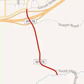 Wyoming Highway 78 (WYO 78) is a 1.23-mile (1.98 km) long Wyoming state highway located in Carbon County in the city of Rawlins. The highway runs along a portion of South Higley Boulevard.