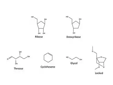 XNA exhibits a variety of structural chemical changes relative to its natural counterparts. Types of synthetic XNA created so far include:[2]