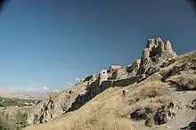 The Xerxes I inscription at Van, also known as the XV inscription,[1][2] is a trilingual cuneiform inscription of the Achaemenid King Xerxes I (r. 486–465 BC).[3][4] It is located on the southern slope of a mountain adjacent to the Van Fortress, near Lake Van in present-day Turkey.[4][1] When inscribed it was located in the Achaemenid province of Armenia.[3] The inscription is inscribed on a smoothed section of the rock face near the fortress, approximately 20 metres (70 feet) above the ground. The niche was originally carved out by Xerxes' father, King Darius (r. 522–486 BC), but he left the surface blank.[5][4]