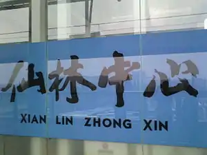 Xianlinzhongxin station (Chinese: 仙林中心站; pinyin: Xiānlínzhōngxīn Zhàn; lit. 'Xianlin Center station'), is a station of Line 2 of the Nanjing Metro. It started operations on 28 May 2010 along with the rest of Line 2.[1][2]