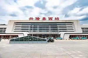 Xinglongxian West railway station (Chinese: 兴隆县西站; pinyin: Xīnglóngxiàn Xī Zhàn)[1] is a railway station of Beijing-Shenyang high-speed railway located in Xinglong County, Chengde, Hebei Province, People's Republic of China. It was opened on 22 January 2021.[2]