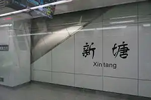 Xintang (Chinese: 新塘) is a metro station on Line 4 of the Hangzhou Metro in China. It is located in the Jianggan District of Hangzhou.[1] This station was opened on June 28, 2015.