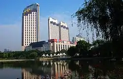 Xiuzhou District (Chinese: 秀洲区; pinyin: Xiùzhōu Qū) is a district in Jiaxing, Zhejiang, China, bordering Jiangsu province to the north. There is 90 km (56 mi) to central Shanghai in the northeast, 80 km (50 mi) to Hangzhou in the southwest and 70 km (43 mi) to Suzhou in the north. It is an important urban district of Jiaxing city. The total of Xiouzhou District is 542 km2 (209 sq mi), population of 500,000 and it is composed of five towns, four streets and one provincial E.D. Zone (Economical Development Zone).