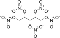 Xylitol pentanitrate (XPN) is a nitrated ester primary explosive[3][4] first synthesized in 1891 by Gabriel Bertrand.[5] Law enforcement has taken an interest in XPN along with erythritol tetranitrate (ETN) and pentaerythritol tetranitrate (PETN) due to their ease of synthesis, which makes them accessible to amateur chemists and terrorists.[6][7]